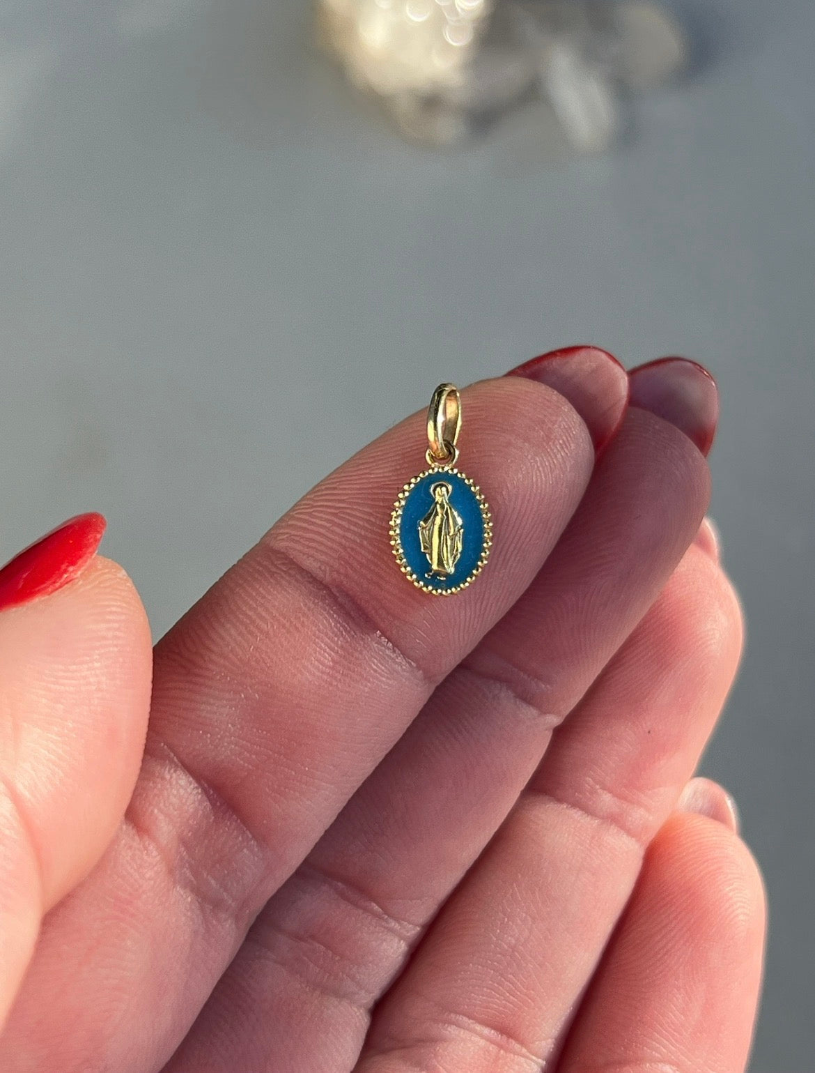 Estate 18k Gold and Turquoise Resin Holy Madone Pendant by gigiCLOZEAU