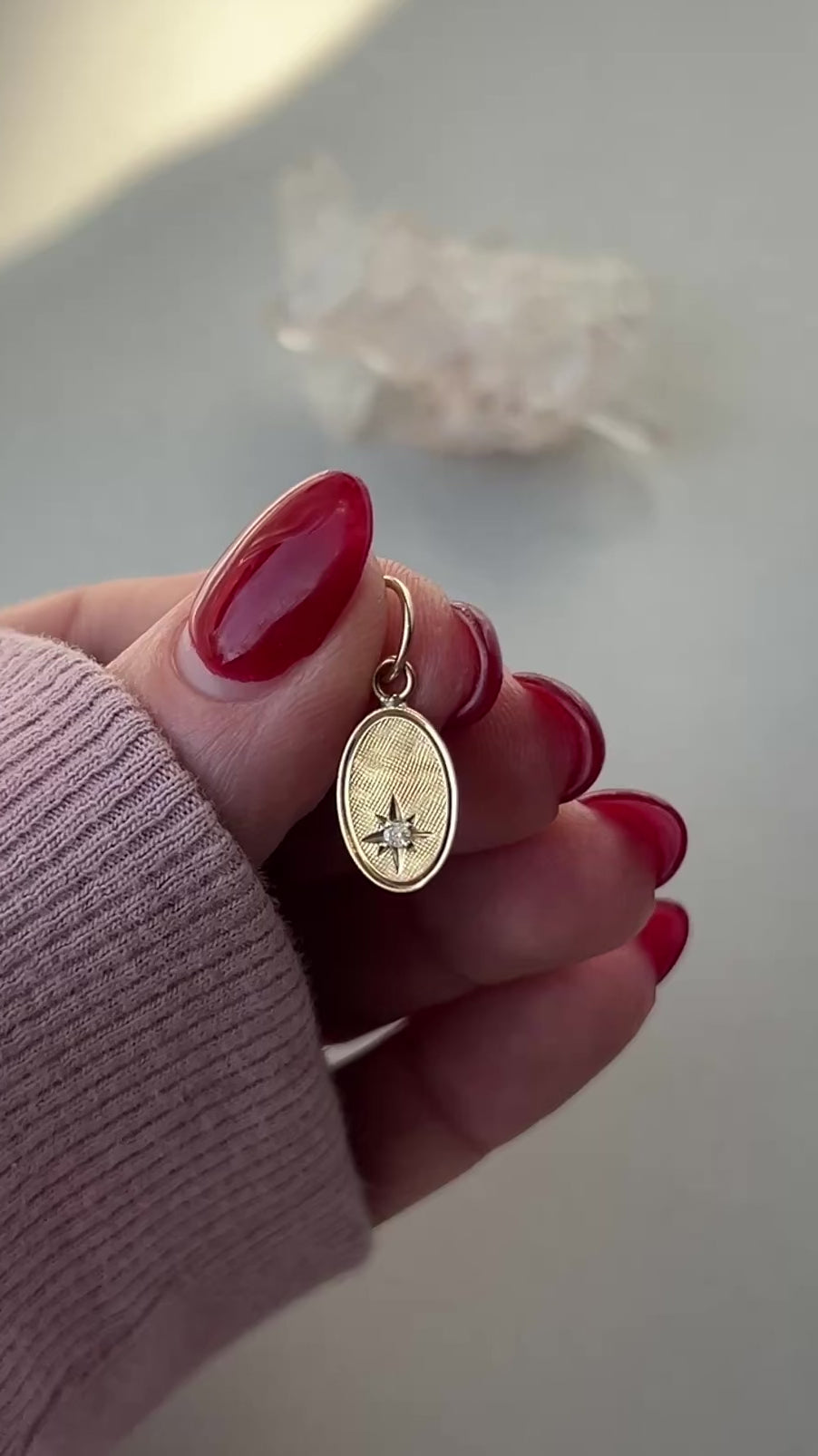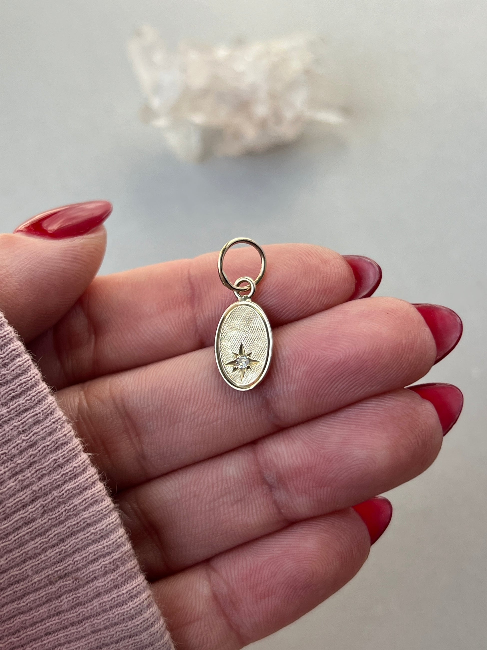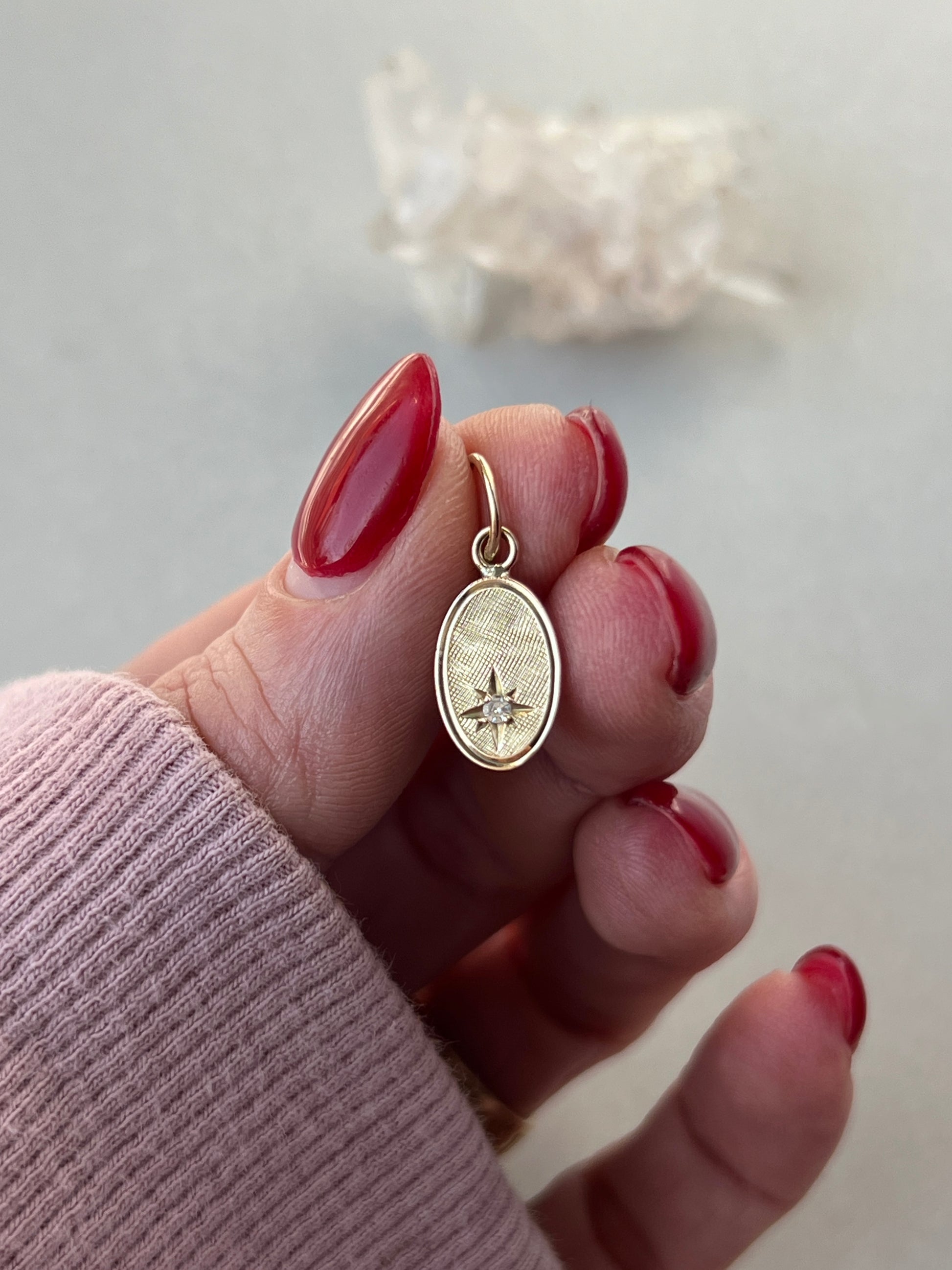 Vintage 14k Gold Small Oval Star Set Diamond Charm