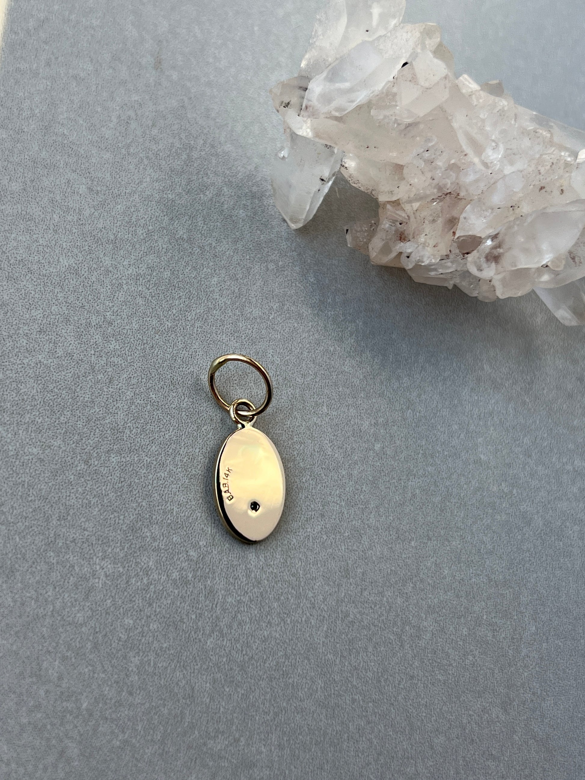 Small Vintage Oval Tie-Tac Charm Conversion with Star-Set Diamond in 14k Yellow Gold.