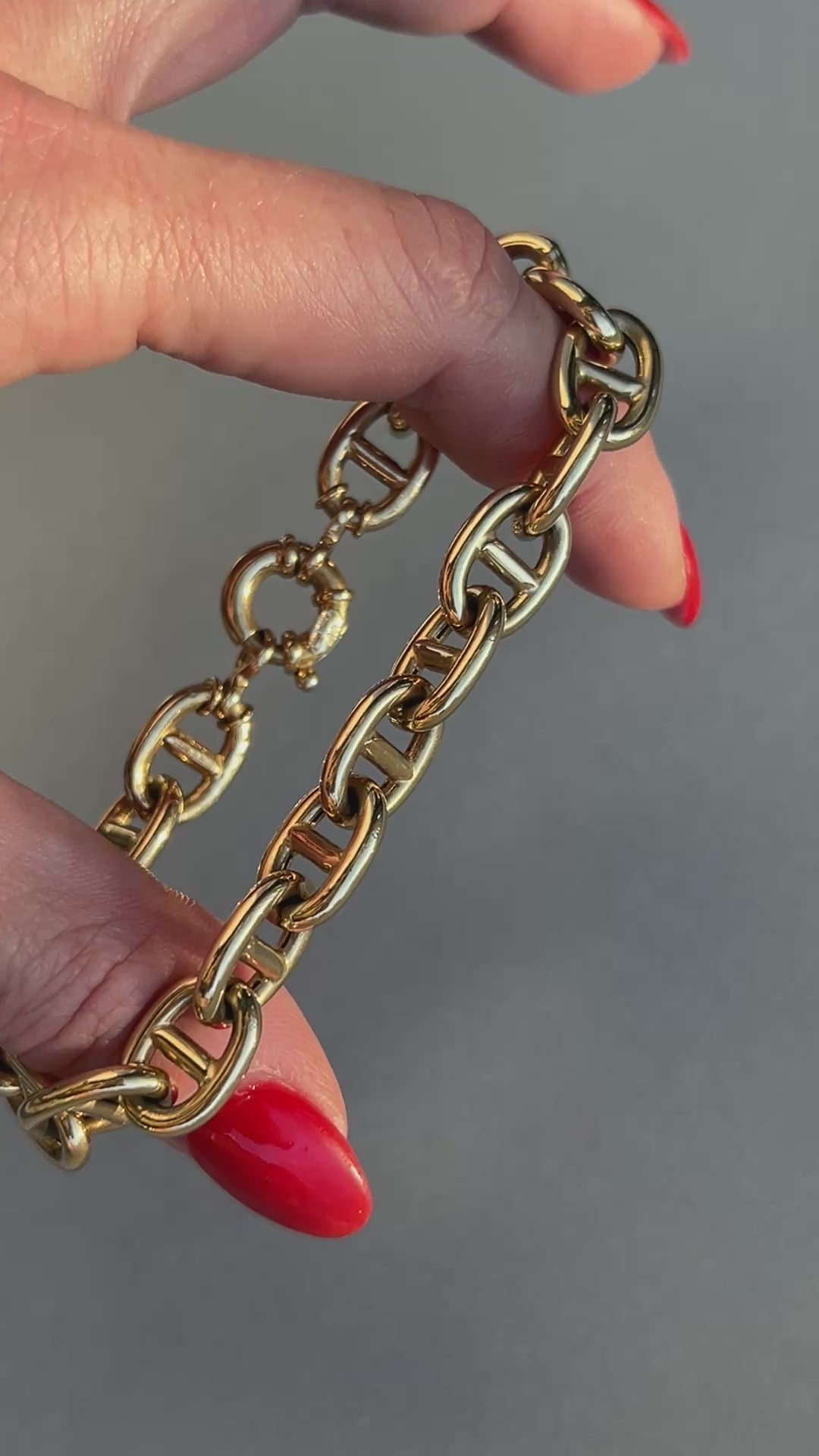 Love the HUGE oversize links! Sturdy construction, semi hollow (maximum bang for buck), and a great oversize bolt clasp (that would be fun to hang a few charms from!)
