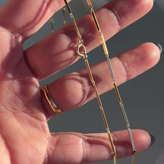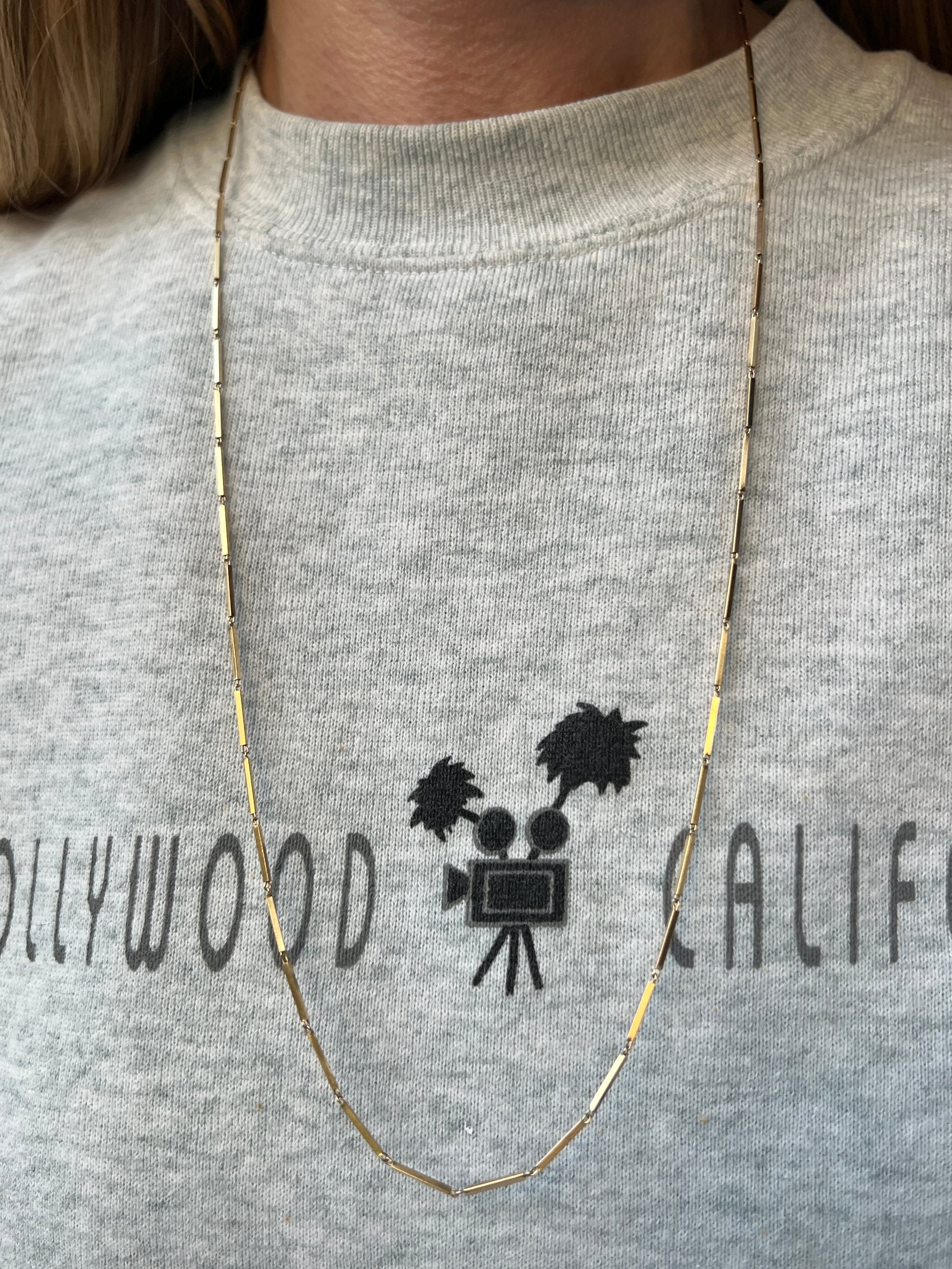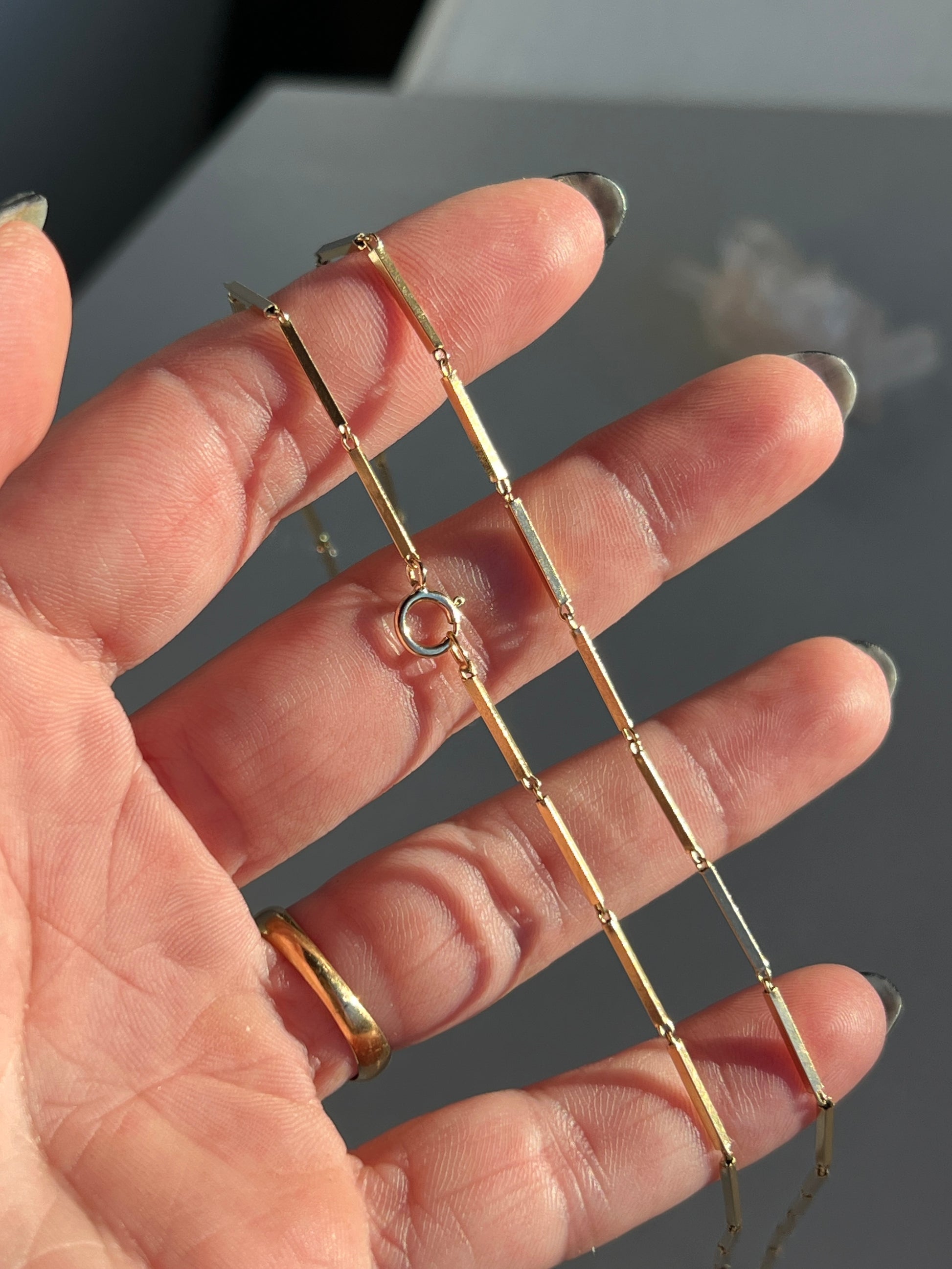 Vintage 28” Bar Link Chain Necklace in 14k Yellow Gold