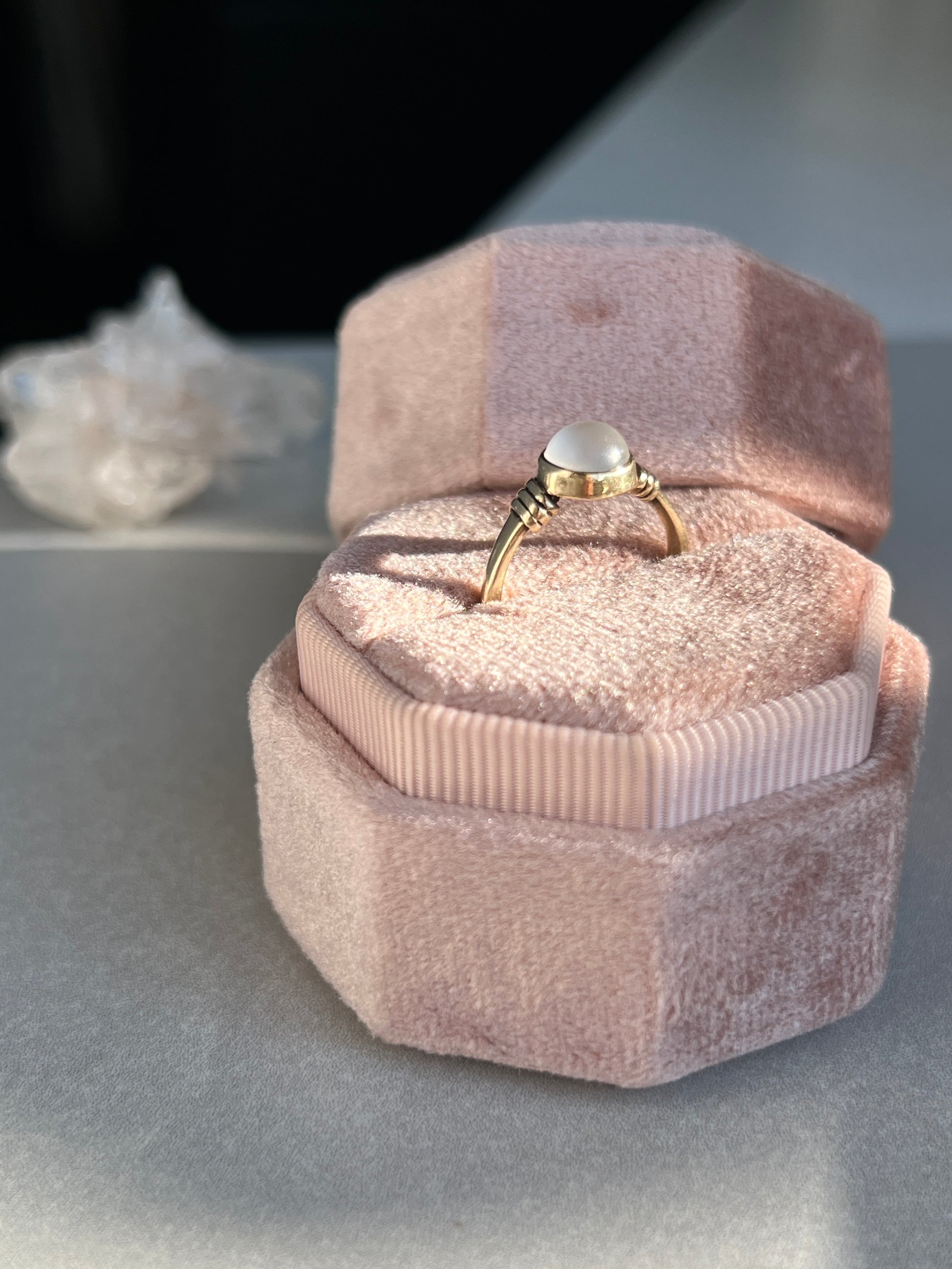 Vintage bezel-set Moonstone cabochon Ring in 14k Yellow Gold
