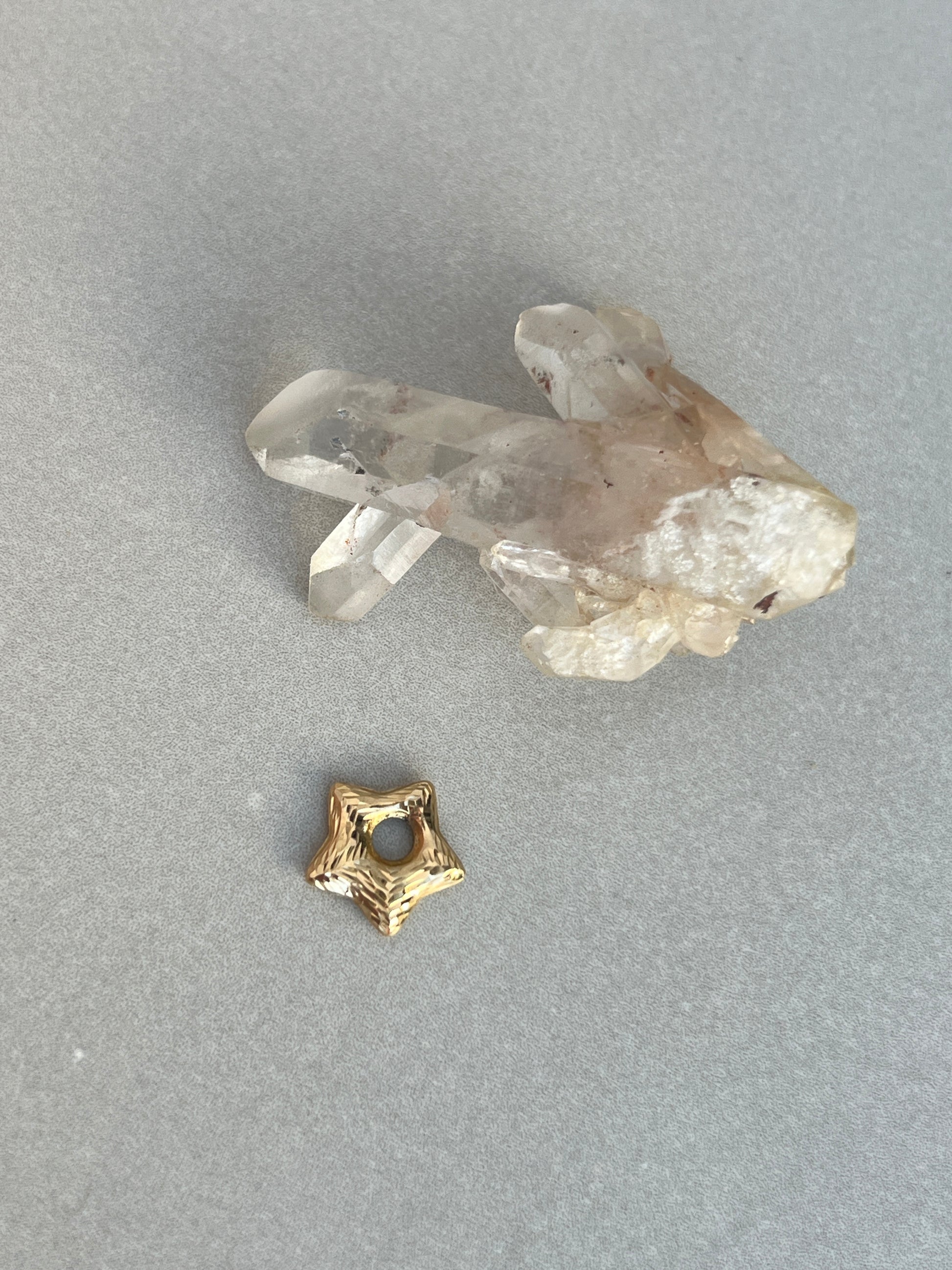 Beautiful Diamond-cut floating puffy star slider charm in 14k yellow gold.