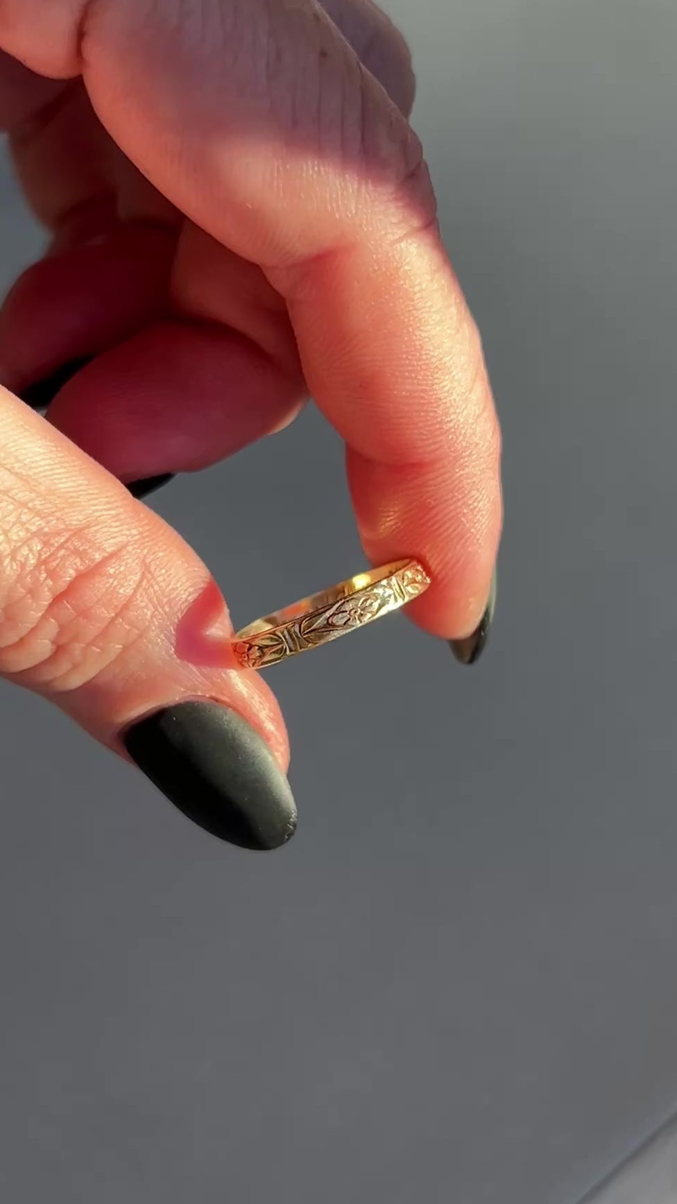 In pristine condition, with absolutely no wear evident to the lovely floral patterning anywhere along the band. Engraved ‘My Love For You Is Forever And Always ♥️’ on the inside of the band.