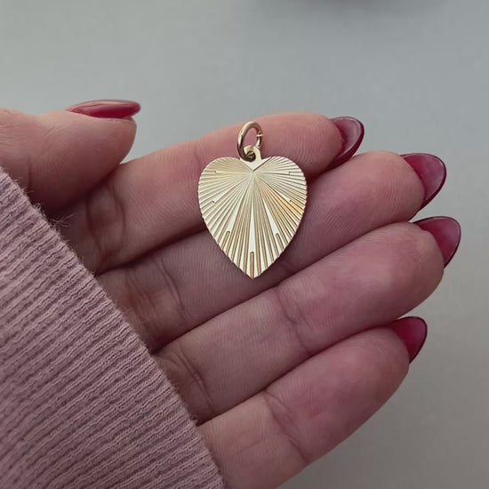 Vintage 14k Gold Midcentury Engine Turned Heart Charm