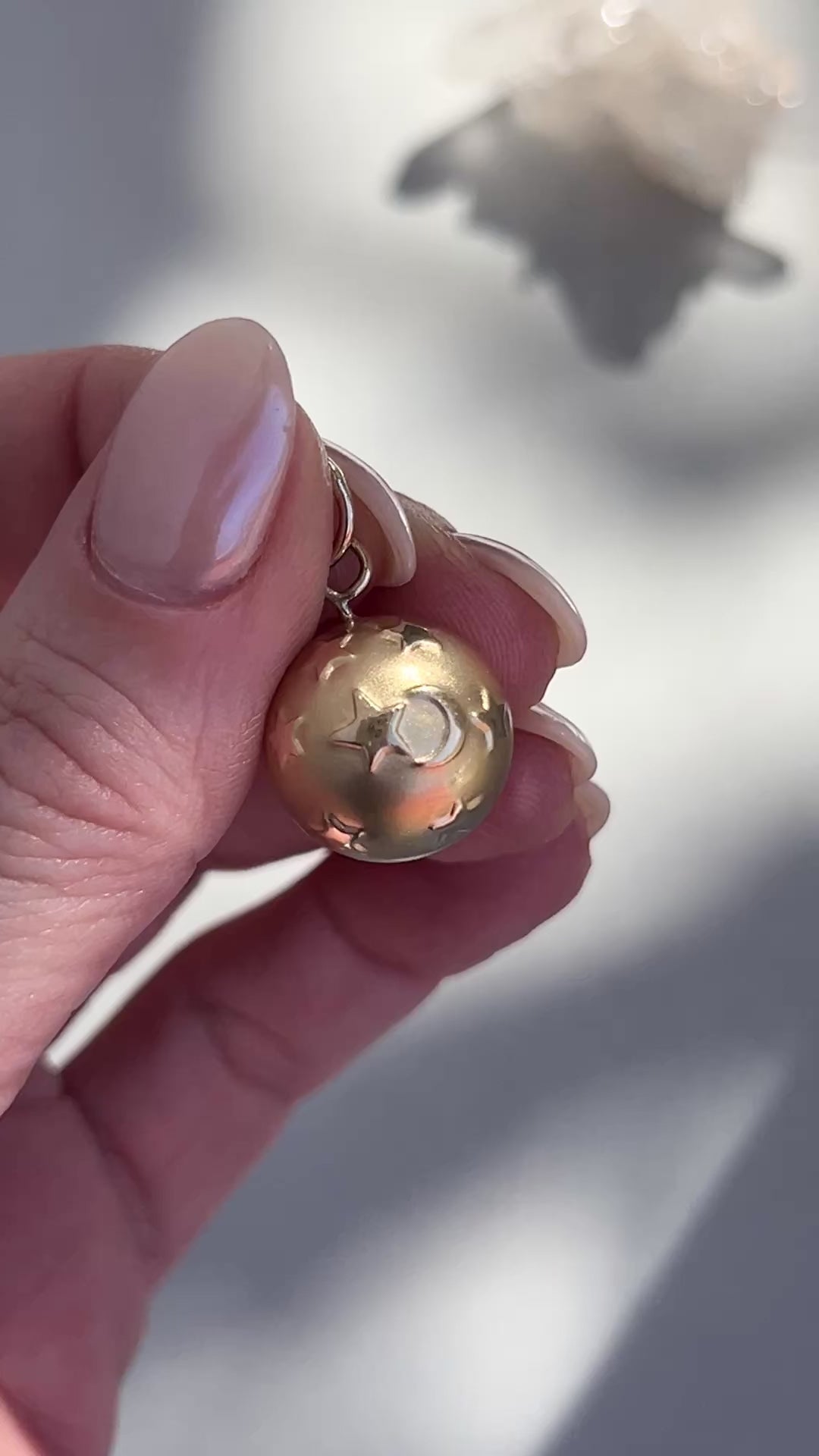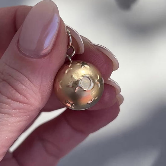 Vintage 14k Gold Puffy Celestial Moon + Stars Ball Pendant