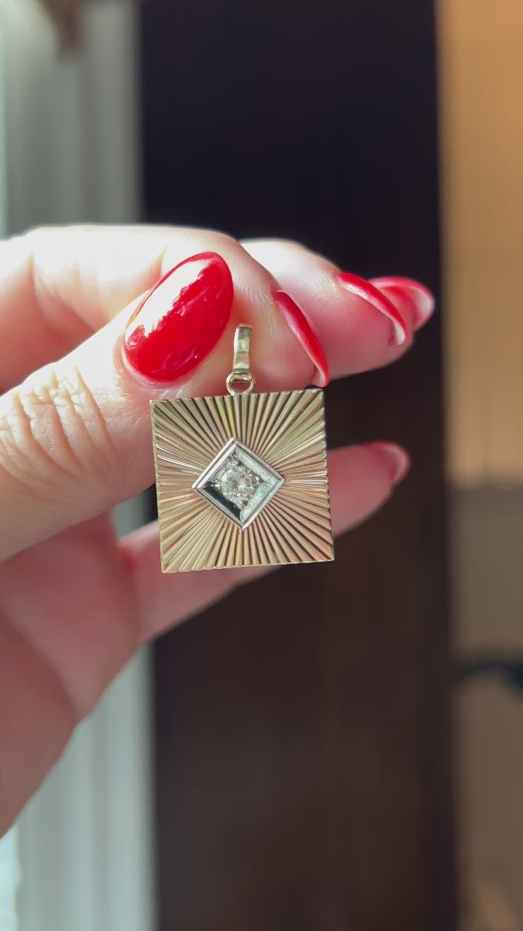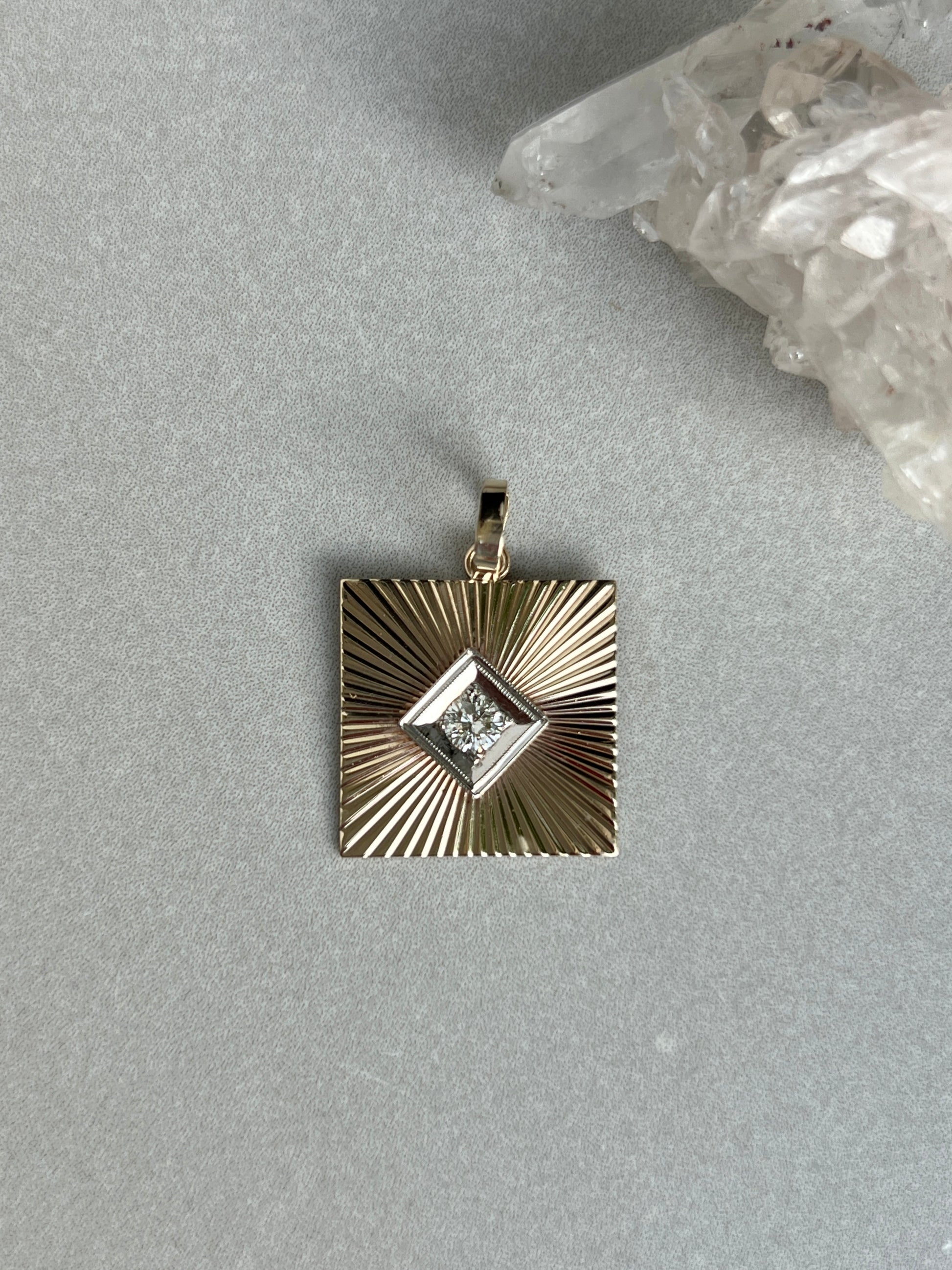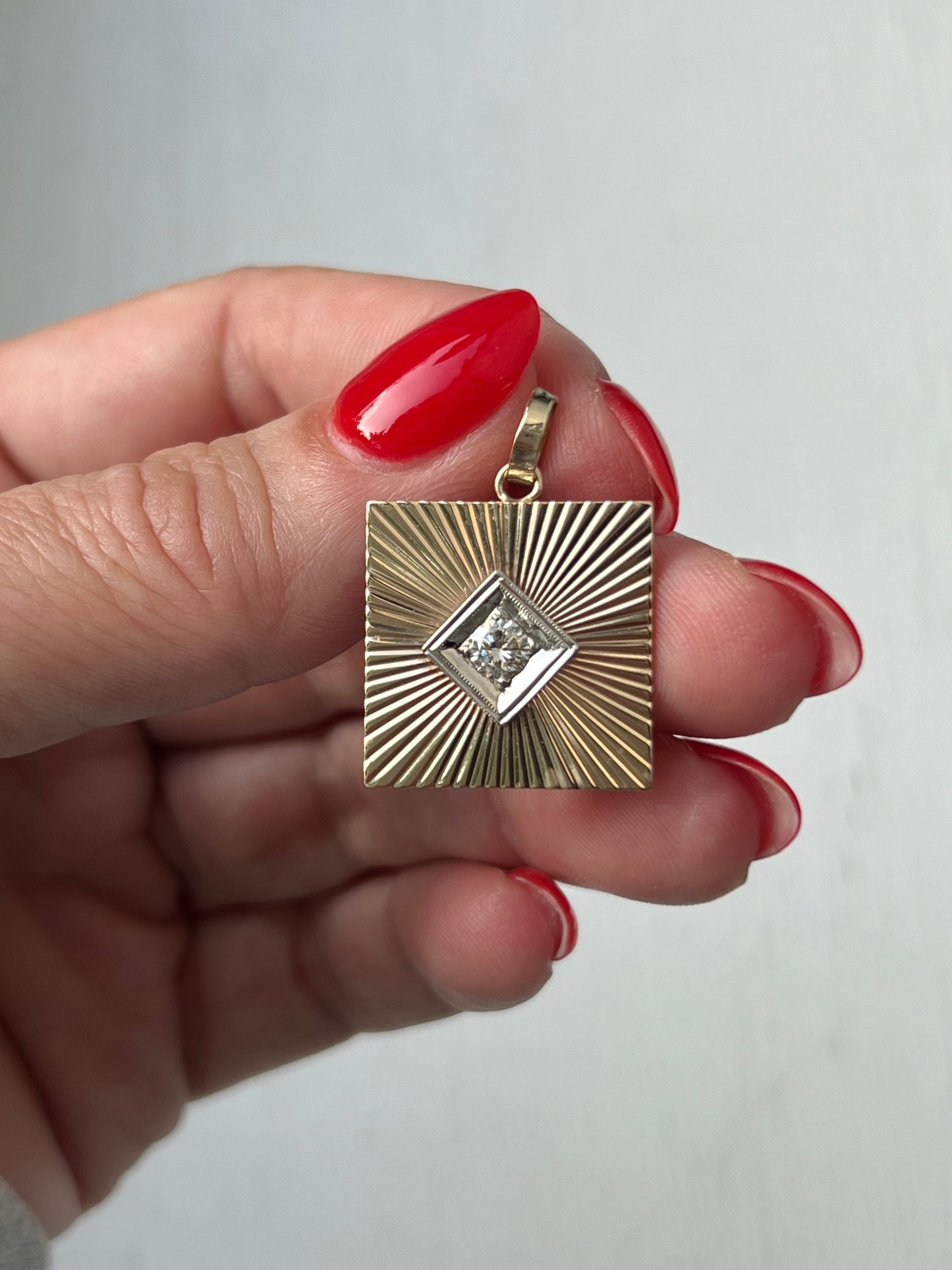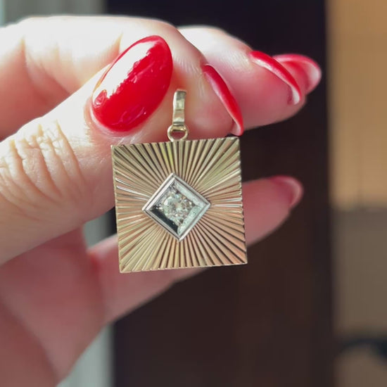 Vintage 14k Gold Square Engine Turned Diamond Cufflink Conversion Charm