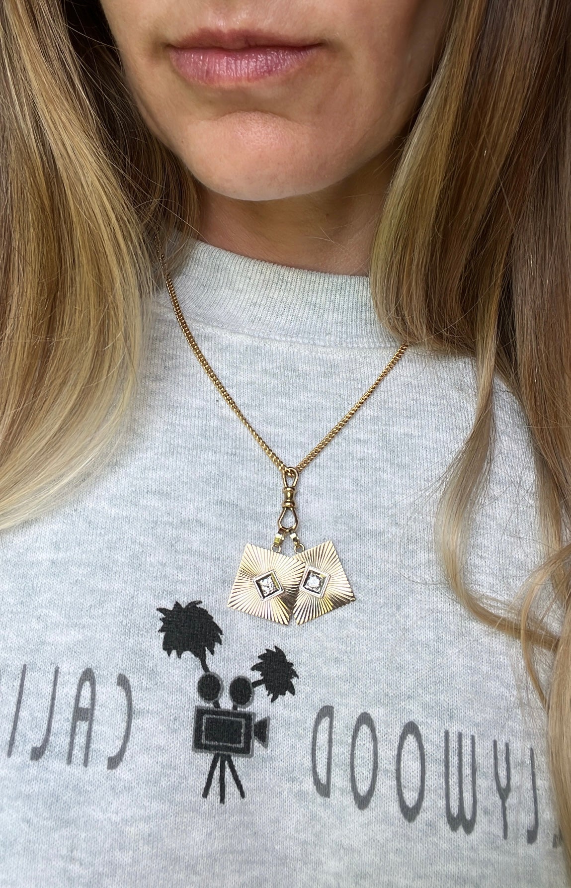Vintage 14k Gold Square Engine Turned Diamond Cufflink Conversion Charms
