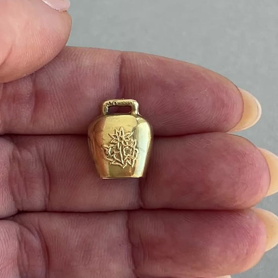 Fabulous Vintage Swiss Edelweiss Cowbell Charm in 14k Yellow Gold