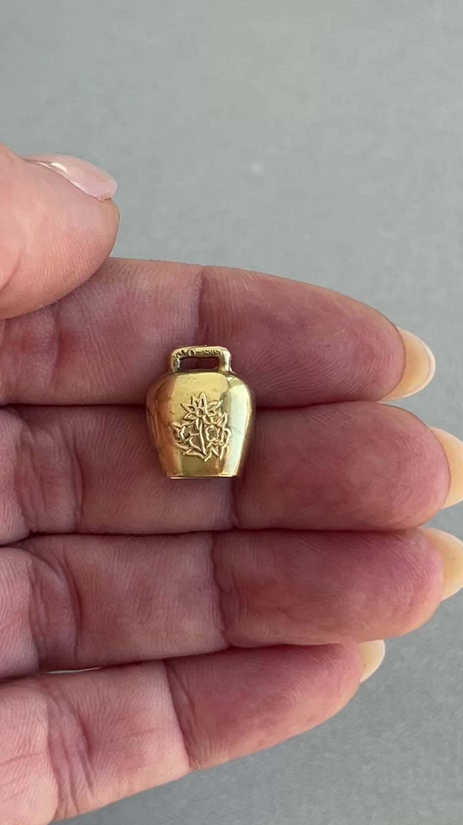 Vintage 14k Gold Swiss Edelweiss Cowbell Charm