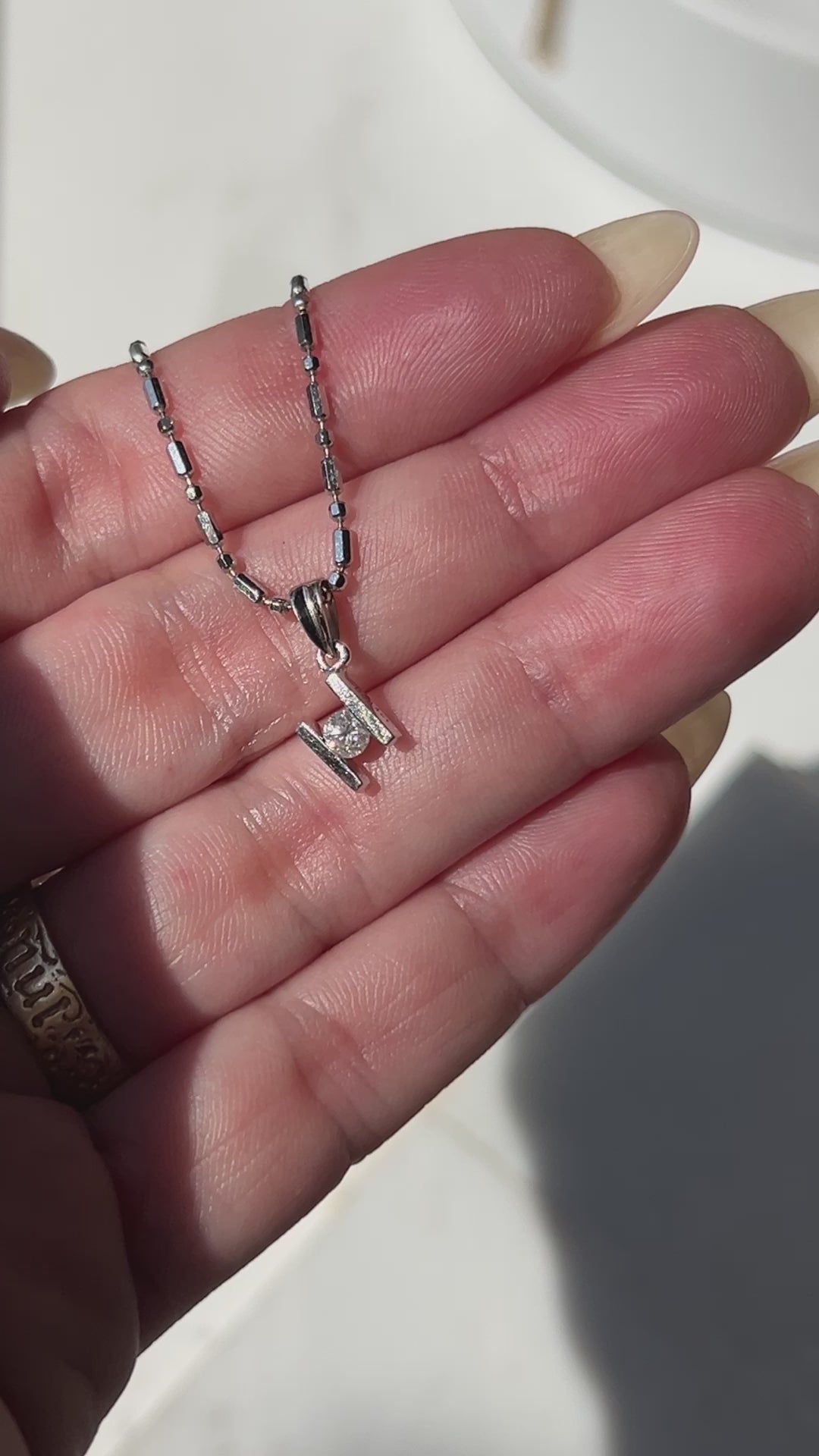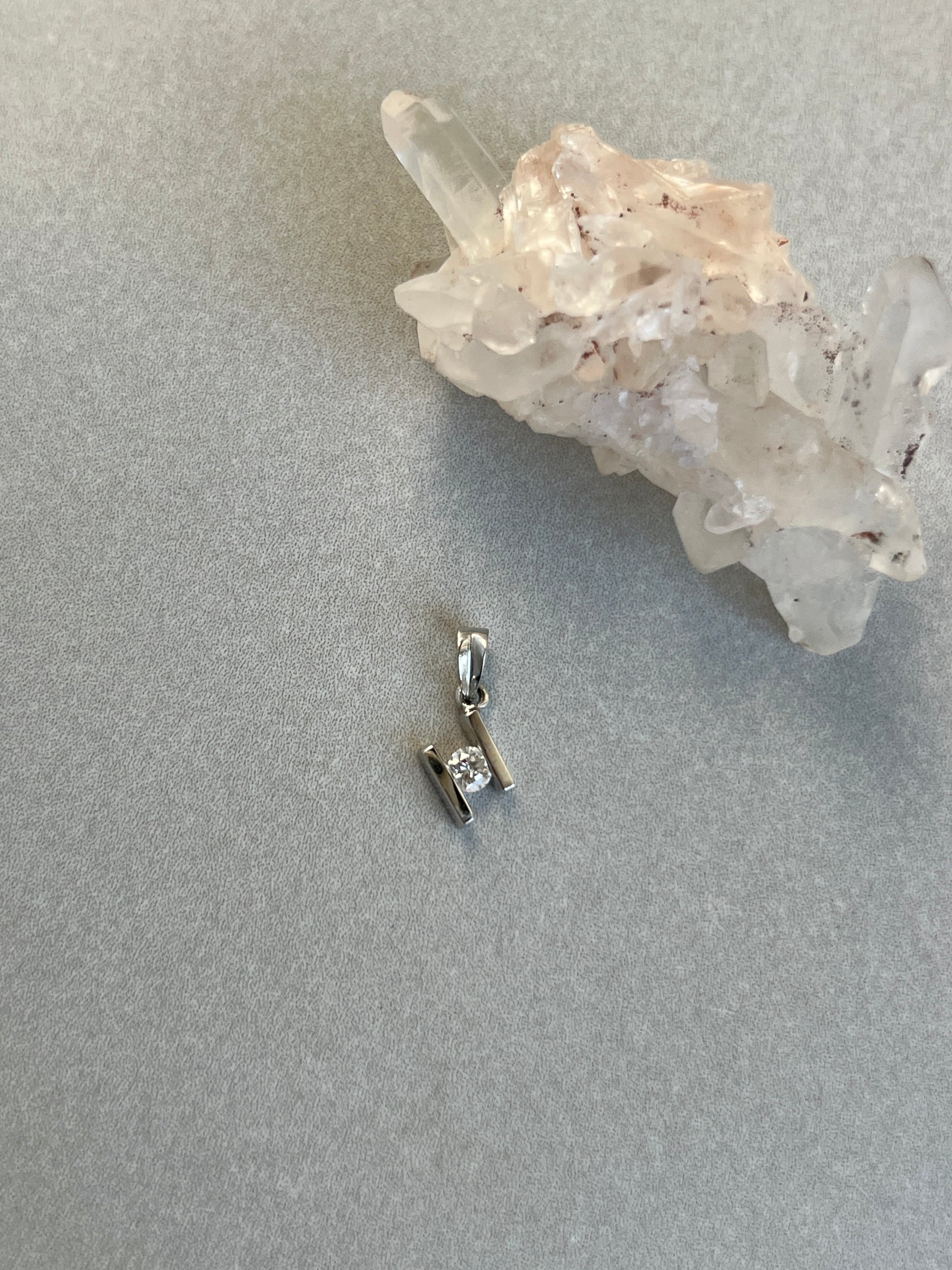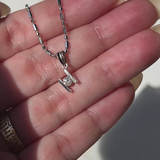 Vintage 18k White Gold Geometric Natural Diamond Pendant