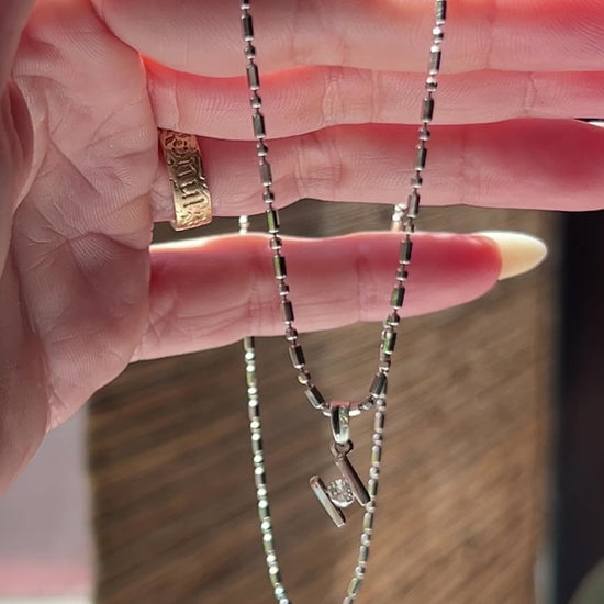 Vintage 18K White Gold Geometric Natural Diamond Pendant