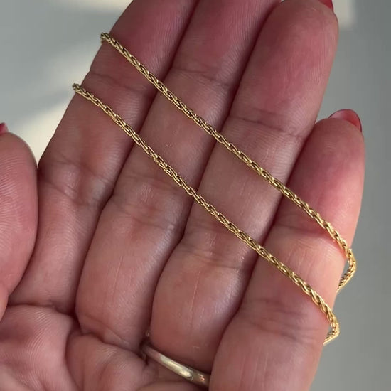 Vintage 24” Wheat Link Chain Necklace in 14k Yellow Gold